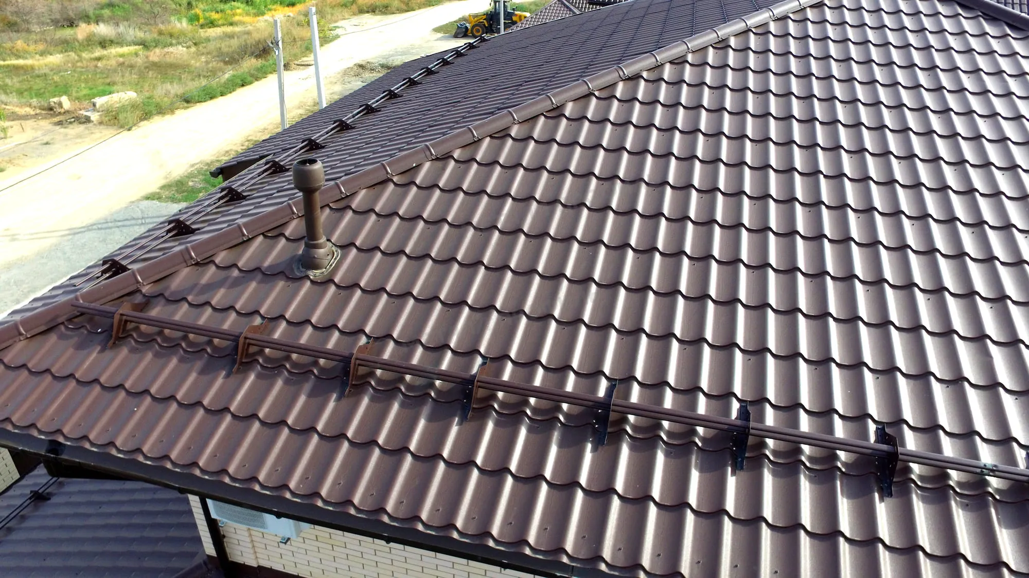 Металлочерепица с профилем Монтеррей толщиной 0,5 мм и покрытием PURETAN® в цвете RAL 8017 (коричневый шоколад) от компании Металл-Профиль представляет собой надежный и эстетичный материал для кровли. Это сочетание прочности, долговечности и привлекательного внешнего вида, подходящее для различных типов зданий. Продукт обеспечивает отличную защиту от атмосферных воздействий и гармонично вписывается в ландшафт.