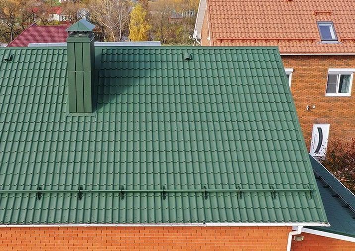 Металлочерепица с профилем Монтеррей толщиной 0,5 мм и покрытием VikingMP® E в цвете RAL 6005 Зеленый мох представляет собой надежный кровельный материал от компании Металл-Профиль. Это сочетание эстетики классической черепицы и прочности металла, идеальное для современных крыш. Покрытие обеспечивает долговечность и стойкость к атмосферным воздействиям, а цвет "Зеленый мох" гармонично вписывается в природный ландшафт.