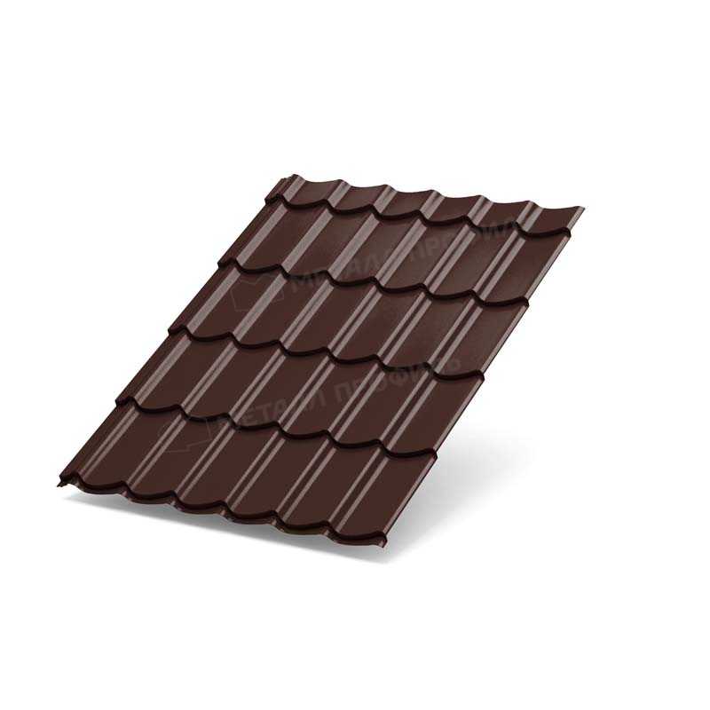 Металлочерепица с классическим профилем и матовым покрытием в шоколадно-коричневом оттенке идеально подходит для кровли жилых и коммерческих зданий. Толщиной 0,45 мм, она сочетает прочность, эстетику и долговечность, обеспечивая надежную защиту от погодных условий.
