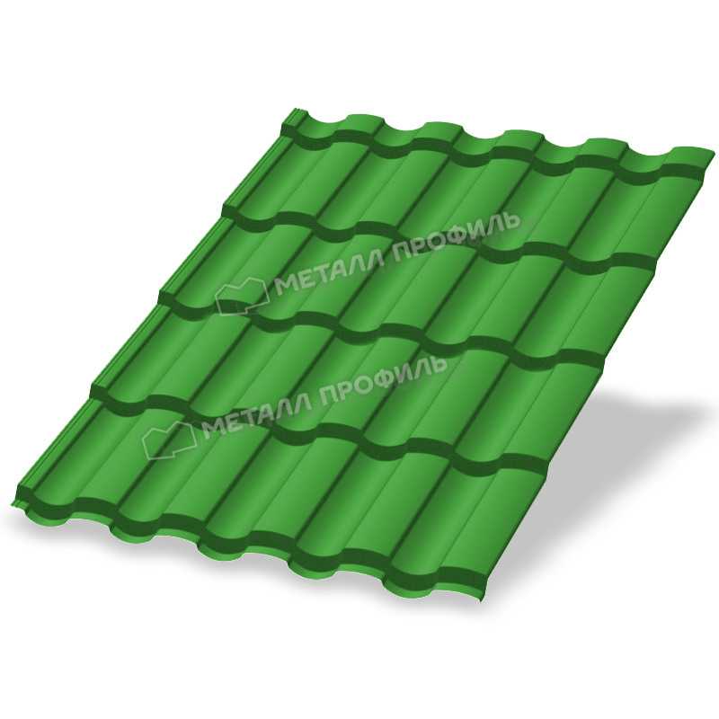 В состав входит высококачественный полиэстер с добавками, улучшающими антикоррозионные характеристики. Поверхность гладкая, с матовым эффектом, что придает крыше элегантный вид. Цвет RAL 6018 добавляет свежести и гармонично вписывается в природные ландшафты.