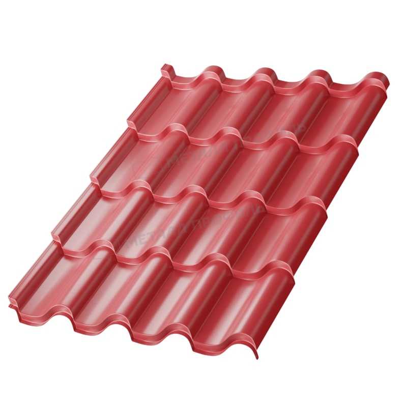 Одно из ключевых преимуществ — это сочетание доступной цены и высокого качества, что делает продукт выгодным вложением. Материал легок в монтаже, не требует специального оборудования и может устанавливаться на обрешетку с шагом 350 мм. Он устойчив к коррозии, что продлевает срок службы до 30 лет. Цвет RAL 3011 маскирует загрязнения и гармонирует с кирпичными фасадами. Преимущества включают экологичность: металл подлежит переработке, а покрытие не содержит вредных веществ. В отличие от натуральной черепицы, этот вариант легче, снижая нагрузку на стропила. Также отмечается отличная гидроизоляция и сопротивление огню класса А1.