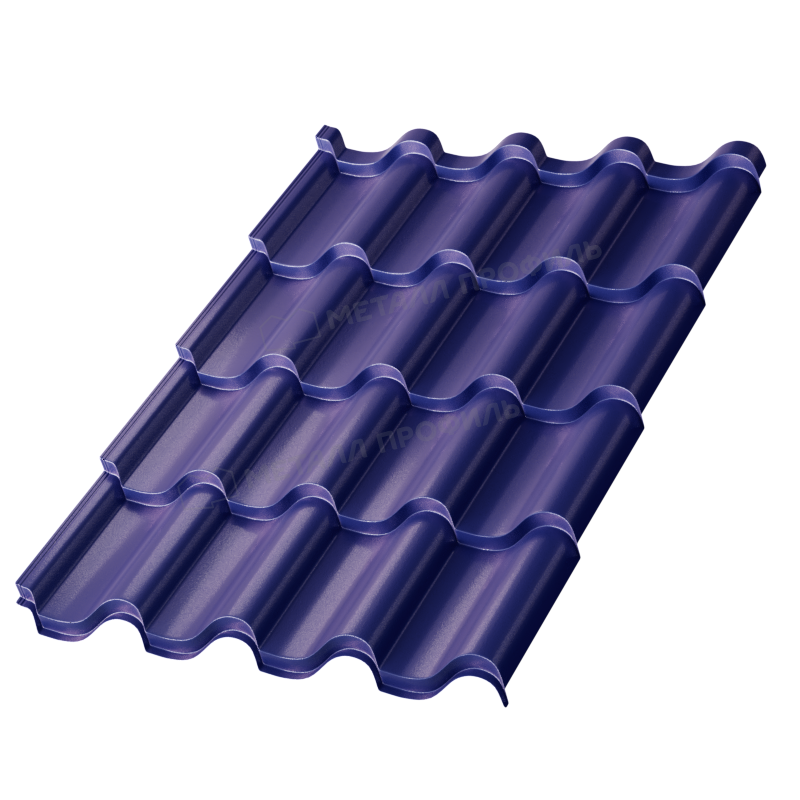 Темно-синий цвет гармонирует с природными ландшафтами, придавая зданию современный и изысканный вид. Профиль имитирует классическую черепицу, повышая визуальную привлекательность.