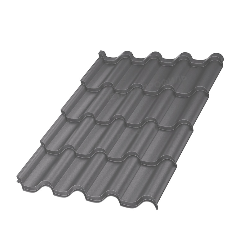 Профиль Монтерроса-S отличается симметричной волной, имитирующей натуральную керамическую черепицу. Высота волны составляет 25 мм, что придает крыше объемный и выразительный вид, подходящий для скатных кровель с уклоном от 12 градусов.
