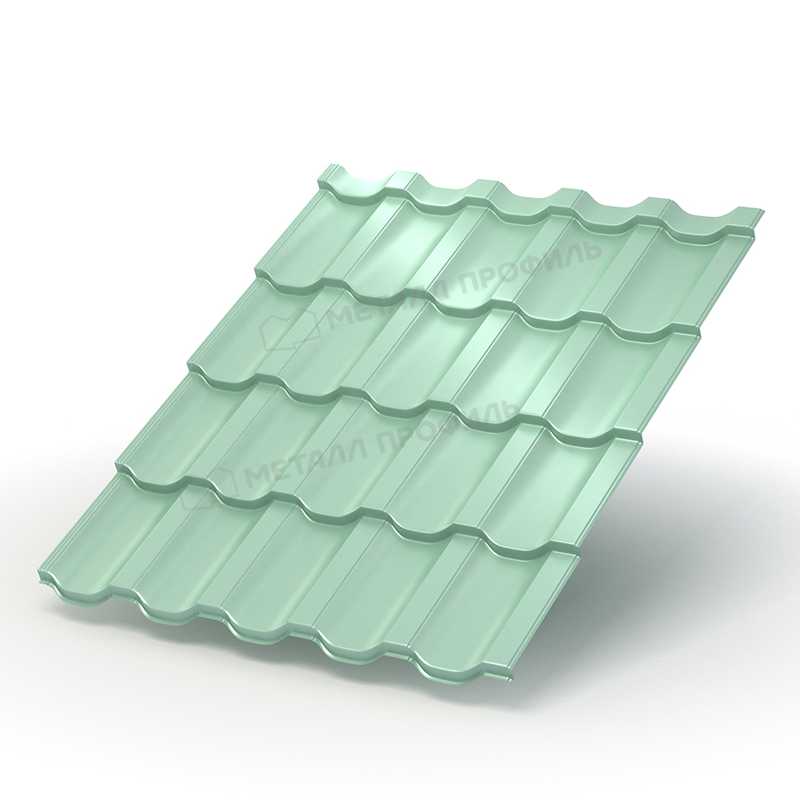 Металлочерепица Трамонтана-M с покрытием PURMAN® Tourmalin в светло-зеленом металлике представляет собой надежный кровельный материал толщиной 0,5 мм от компании Металл-Профиль. Этот продукт сочетает эстетику натуральной черепицы с прочностью металла, обеспечивая долговечность и стиль для вашего дома.