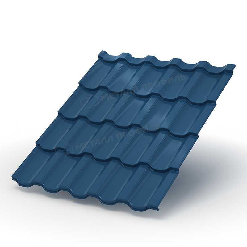 Металлочерепица с профилем Трамонтана-SL и толщиной 0,5 мм в покрытии PURETAN® RR 35 Синий представляет собой надежный кровельный материал, сочетающий эстетику и долговечность. Это решение идеально для современных крыш, обеспечивая защиту от погодных воздействий и стильный внешний вид в синем оттенке.