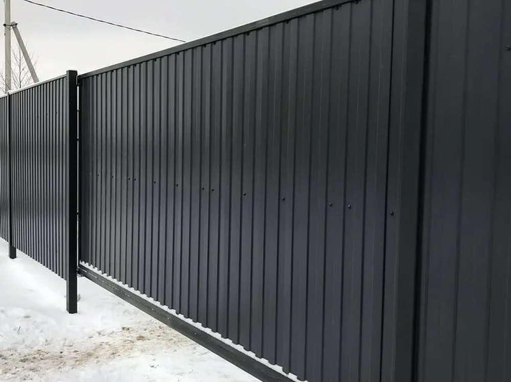 Профиль С-8 часто используется для заборов, ворот и фасадов, где важна эстетика и быстрота сборки. Его низкая волна не создает излишней рельефности, что подходит для минималистичных дизайнов.
